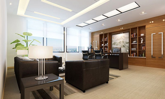 總經理辦公室:在現代辦公空間設計時也是一個重點。一般由會客(休息)區和辦公區兩部分組成。會客區由小會議桌、沙發茶幾家組成,辦公區由書柜、板臺、板椅、客人椅組成。空間內要反映總經理的一些個人愛好和品味,同時要能反映一些企業文化特征。