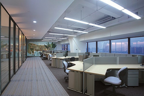 辦公室裝修的走廊設計中,關于燈光的設計安排是比較重要的。走廊對于辦公空間來說并不是一個非常重要的區域,只是用作通過行走的一個過度區域,所以這個地方的照明僅僅是讓空間明亮通透一些,盡量不顯得擁擠即可。并不需要過于明亮的光線,只需要跟人感覺不模糊就可以。